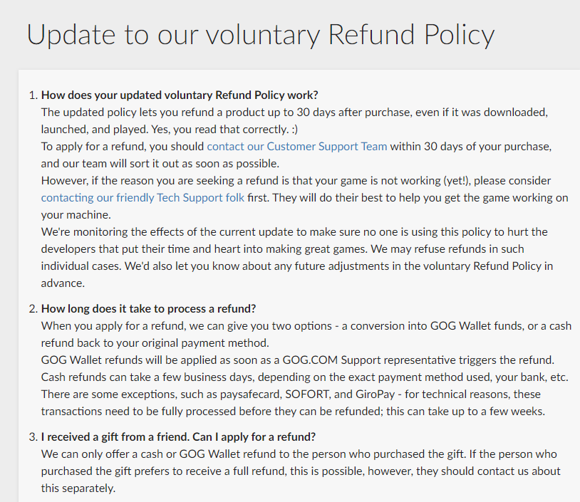 How does your updated voluntary Refund Policy work? The updated policy lets you refund a product up to 30 days after purchase, even if it was downloaded, launched, and played. Yes, you read that co...