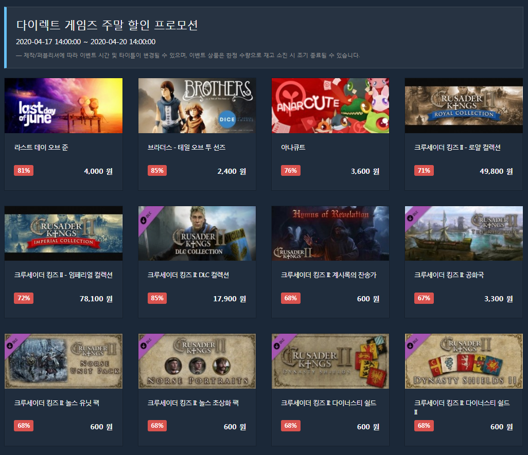 현재 다이렉트 게임즈에서 주말 할인 프로모션을 진행하고 있습니다