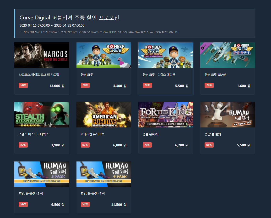 현재 다이렉트 게임즈에서 Curve Digital 퍼블리셔 주중 할인 프로모션을 진행하고 있습니다