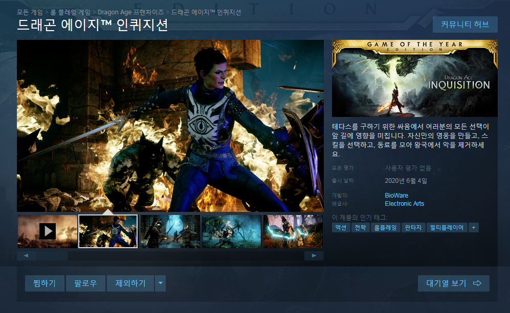 드래곤 에이지 인퀴지션이 스팀에 출시했습니다
