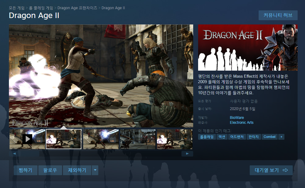 Dragon Age2 스팀 출시 기념으로