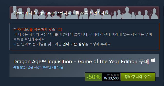 이 게임 역시 2020년 7월 10일까지 50퍼센트 할인된 가격 23500원에 구매할 수 있습니다