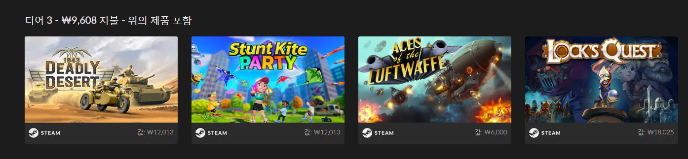 총 16개의 게임을 3 티어로 나눠서 구매할 수 있습니다