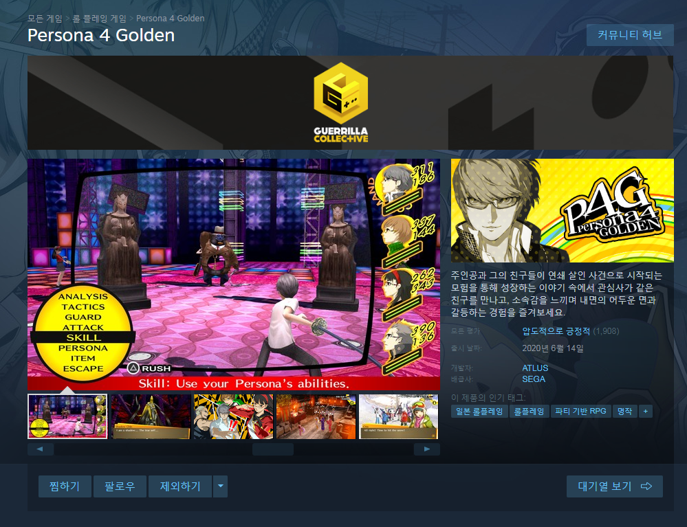 페르소나 4 골든이 드디어 스팀에 출시했습니다