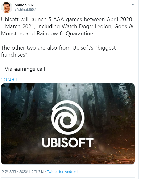 코타쿠의 편집장이자 유출 전문 에디터로 신뢰도가 높은 제이슨 슈라이어가 최근 자신의 트위터를 통해 유비소프트의 차기 라인업에 대해 언급했습니다.